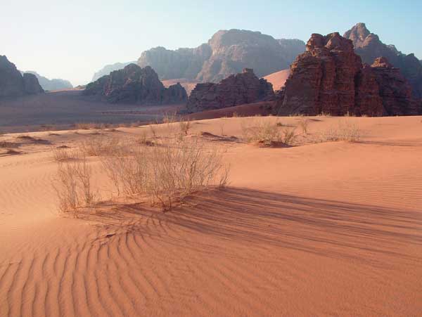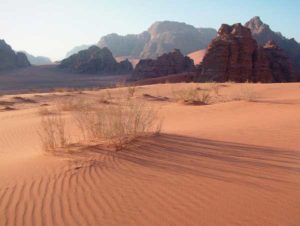 Petra liegt in der jordanischen Wüste, die reich an antiken Burgen, Festungen und Landhäusern und Karawansereien ist. Ein besonders beeindruckendes Beispiel dafür ist Qusair Amra, ein Fresken geschmücktes Wüstenschloss und ebenfalls ein UNESCO-Weltkulturerbe. Vor allen Dingen sind die Wüsten des Landes jedoch ein unvergleichliches Naturschauspiel, das am Wadi Rum im Süden des Landes seinen Höhepunkt findet. Eine Nacht unter freien Himmel in diesem Naturschutzgebiet, umgeben von schroffen Bergen und Wüstensand ist ein unvergessliches Erlebnis. 120 Vogelarten, Grauwolf und Sandkatze teilen sich mit weiteren Spezies diesen Lebensraum, der auf einer Geländewagentour oder ?spannender- mit dem Kameltrek oder mittels einer Ballonfahrt erkundet werden kann.