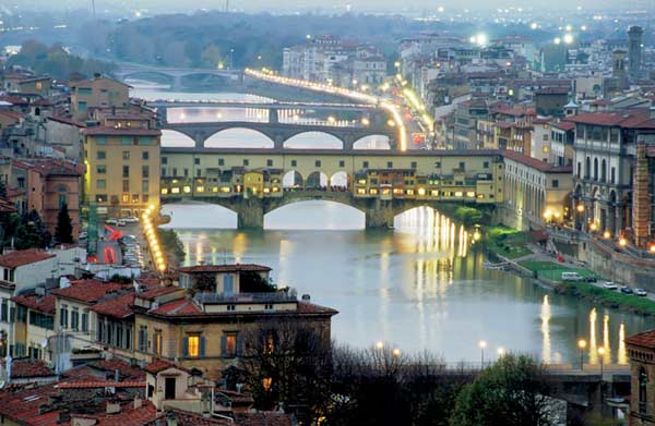Florenz erstreckt sich zu beiden Seiten des Arno, verbunden durch die malerische Ponte Vecchio aus dem 13. Jahrhundert, auf der heute zahlreiche Juwelierläden zu finden sind. Die bekanntesten Sehenswürdigkeiten, wie Dom, Palazzo Vecchio und die Uffizien findet man auf der rechten Arno-Seite. Weite Teile der Altstadt sind mittlerweile autofrei, so dass man alle Sehenswürdigkeiten zu Fuß oder mit öffentlichen Verkehrsmitteln erreichen kann. Um nicht von der Flut von Sehenswürdigkeiten erschlagen zu werden, empfiehlt es sich, mehrere Tage in der Stadt einzuplanen oder gezielte Schwerpunkte zu setzen.