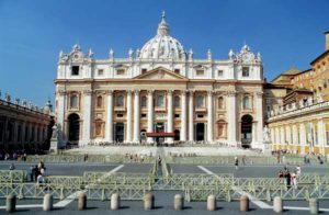Ein Staat in der Stadt ist der Vatikan, der sich auf der rechten Seite des Tibers befindet. Über den von Kolonnaden und Säulen flankierten, von Bellini angelegten, Petersplatz gelangt man zu der berühmtesten Kirche der Christenheit, dem Petersdom. . Bereits unter Kaiser Konstantin im 4. Jahrhundert n. Chr. begannen die ersten Arbeiten an dem Gotteshaus oberhalb des Petrusgrabes. Im 16. Jahrhundert begann man mit dem Umbau zur heutigen Form. Keine geringeren Virtuosen als Raffael und Michelangelo gehörten zu den zahlreichen Baumeistern, die eines der größten Gotteshäuser der Welt mit Innenmaßen von 186 Meter Länge, 45 Meter Höhe im Hauptschiff und 119 Meter in der Kuppel. An diesem Platz wurden Kaiser, wie Karl der Große gekrönt, über Jahrtausende Päpste geweiht und Gebete von Pilgern aus aller Welt gesprochen. Wer von den zahlreichen Kunstschätzen der Kirche begeistert ist, sollte es nicht versäumen auch den Vatikanischen Museen, die einen Großteil des Vatikanischen Palastes einnehmen, einen Besuch abzustatten. Ausgestellt wird eine der wertvollsten und berühmtesten Kunstsammlungen der Welt, mit Werken von Michelangelo, Raffael und Giotto.