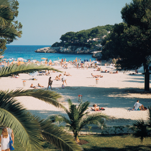 Hauptstrand ist die ca. 60 Meter lange, feinsandige Cala Tropicana, die mit einem hohen Servicestandard aufwartet. Restaurants, Bars und Geschäfte sind genauso vorhanden, wie Liegestuhl- und Sonnenschirmverleih, Tretboote und eine Surfschule. Ebenfalls beliebt ist die benachbarte Cala Es Domingos Grans, die mittels durchschwimmbarer Höhlen mit der Cala Tropicana verbunden ist. Auch hier findet man Strandbars, Schirme und feinen Sand. Beide Strände werden vom Zentrum aus mit einer Mini-Bahn angefahren.