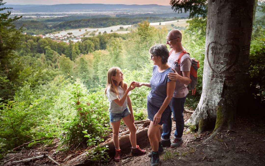 Die Bodanrück-Runde verläuft teilweise auf der Strecke des Premiumwanderwegs SeeGang und bietet an klaren Tagen einen tollen Blick über über die Radolfzeller Bucht, den Bodensee und die Alpen. Bild: TSR GmbH, Kuhnle und Knoedler.