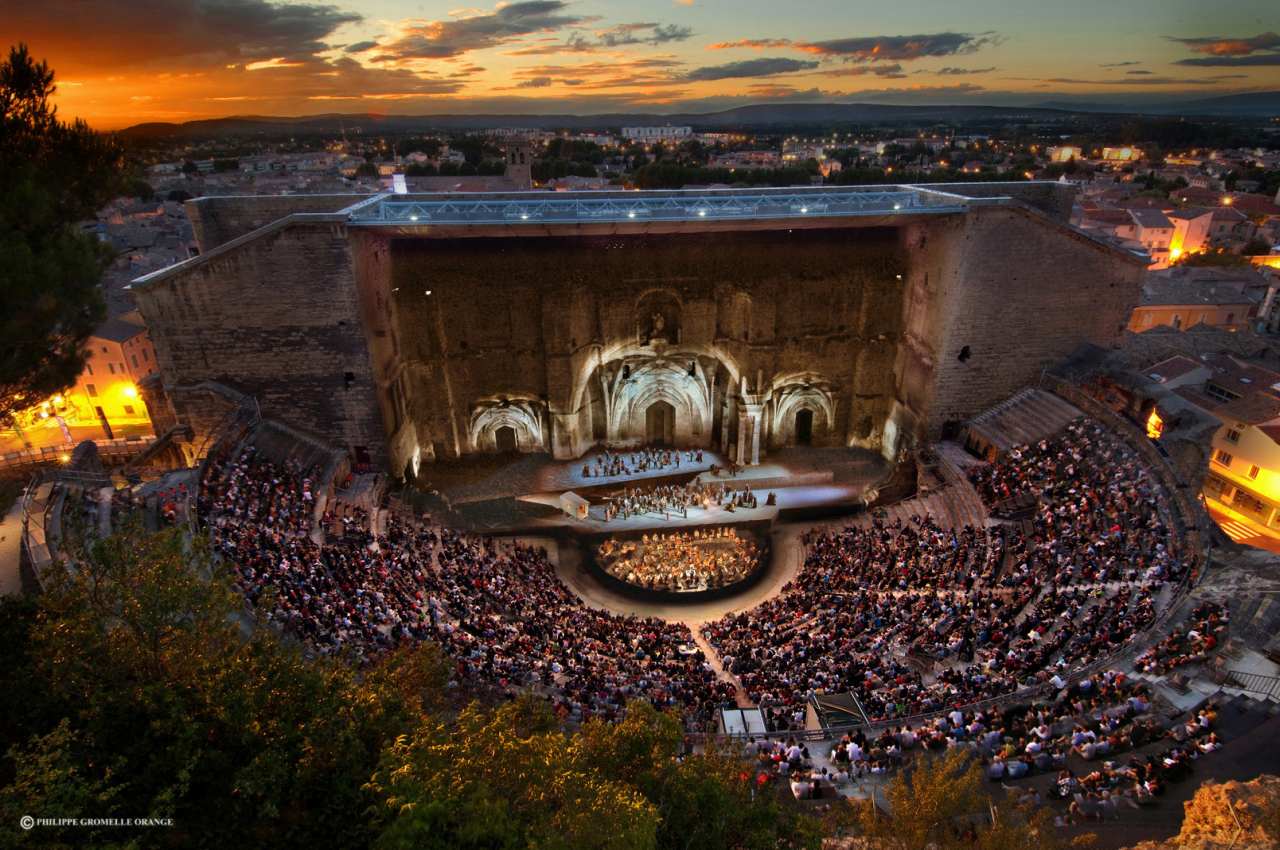 Das antike Theater aus der Zeit des kaiserlichen Roms mit der 37 Meter hohen Bühnenfassade bildet die prächtige Kulisse der „Chorégies d’Orange“. Es ist das älteste Opernfestival Frankreichs, das in diesem Jahr sein 150-jähriges Bestehen feiert. Die Akustik der hohen Mauer begeistert Opern- und Klassikliebhaber aus der ganzen Welt. Für die Jubiläumsausgabe im kommenden Sommer hat der neue künstlerische Leiter, Jean-Louis Grinda, ein Programm mit unveröffentlichten Werken, Überraschungen und berühmten Künstlern geplant. Zu den Höhepunkten zählen Rossinis Oper Wilhelm Tell, die zum ersten Mal in Orange aufgeführt wird. Ebenso Mozarts Don Giovanni in einer Inszenierung von Davide Livermore, Mahlers 8. Symphonie, „des milles“, aufgeführt von Frankreichs Staatsorchester, dem philharmonischen Orchester und dem Erwachsenen- und Kinderchor von Radio France. In einer spanischen Nacht tritt Tenor Placido Domingo in Begleitung des philharmonischen Orchesters Monte Carlo auf. Anna Netrebko und Yusif Eyvazov geben bei einer Gala im „Theâtre Antique“ berühmte Arien und italienische Opernduette zum Besten. Schließlich wird der Pionier des Technos, Jeff Mills, das antike Bauwerk zu neuem Leben erwecken, indem er am 11. Juli mit dem Regionalorchester von Avignon-Provence auftritt.