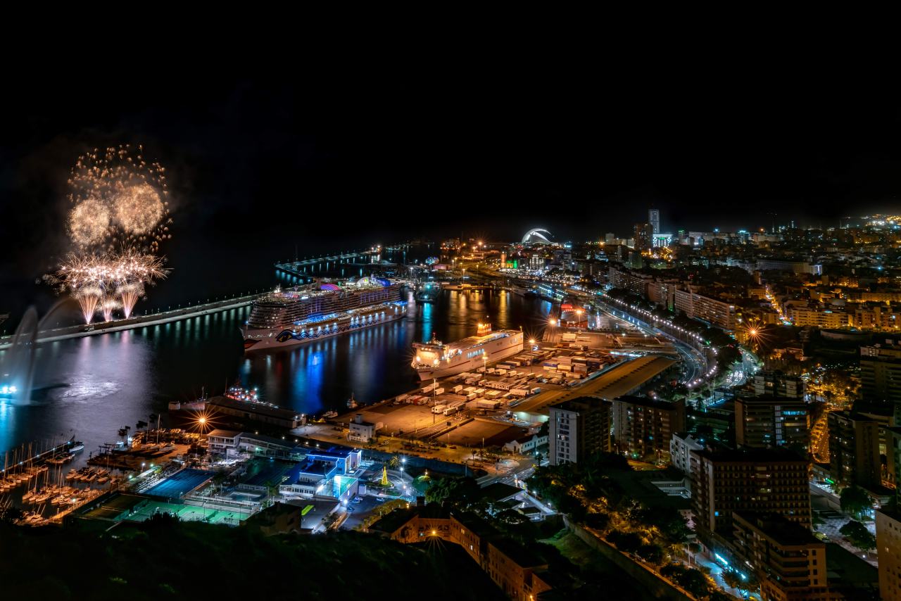 Anlässlich des Starts der Premierensaison des weltweit ersten LNG Kreuzschifffahrtschiffes AIDAnova wurden die beiden Schwesterschiffe AIDAnova und AIDAcara am Abend des 19. Dezembers 2018 mit einem festlichen Feuerwerk aus Santa Cruz de Tenerife verabschiedet.