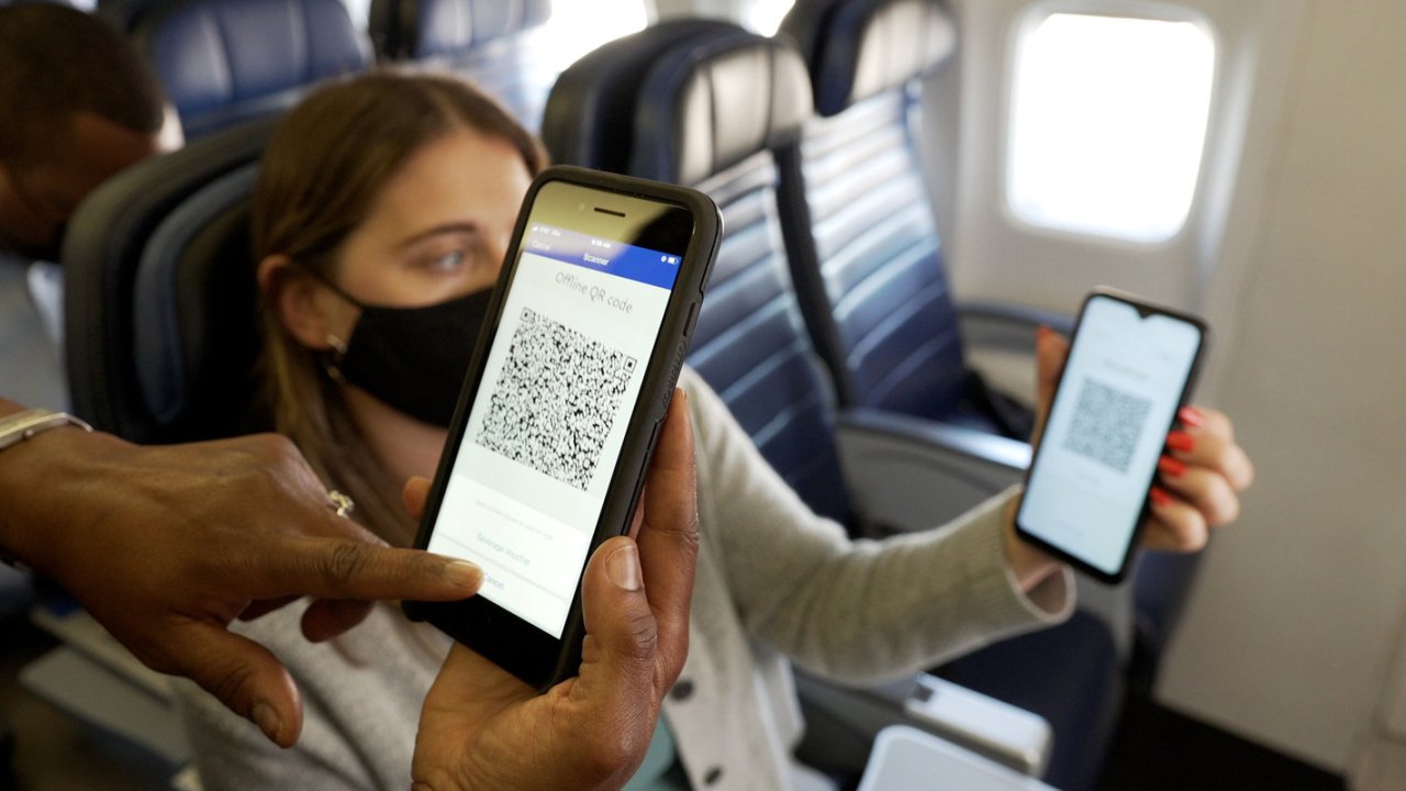 - Der jetzt eingeblendete QR-Code wird den Flugbegleitern zum Einscannen gezeigt.