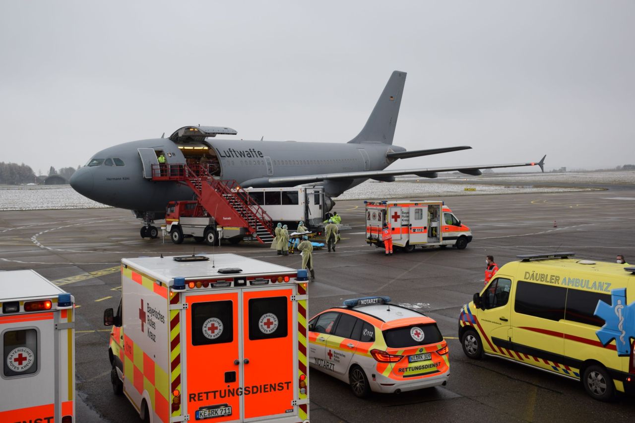 Am frühen Nachmittag landete der Airbus A310 MedEvac auf dem Flughafen Memmingen, um die Patienten mehrerer Intensivstationen aus Schwaben an Bord zu nehmen. Sie wurden in speziell dafür ausgerüsteten Fahrzeugen zum Flughafen gebracht und von Ärzten begleitet. Ihre weitere Behandlung erfolgt in Kliniken in Nordrhein-Westfalen.