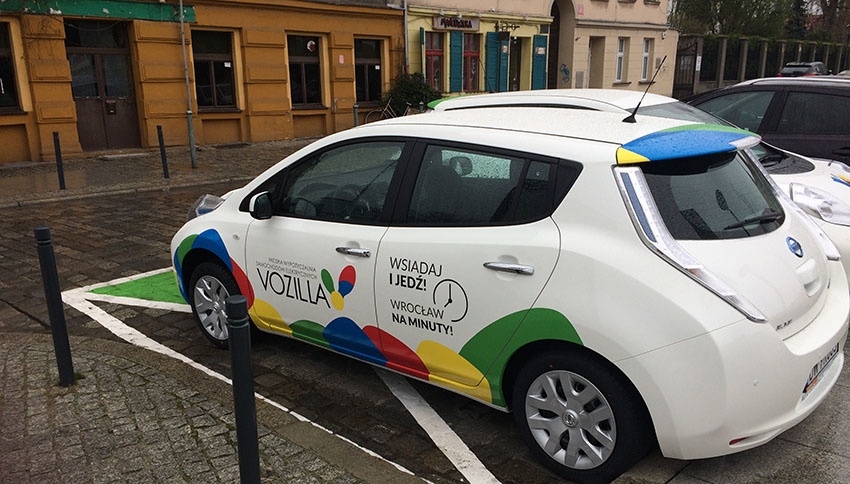 Die bunten Fahrzeuge von Vozilla sind im Stadtbild von Wrocław (Breslau) nicht zu übersehen, aber kaum zu hören. Mit insgesamt 190 Elektroautos vom Typ Nissan Leaf ging der städtische Carsharing-Anbieter Vozilla kürzlich in der Oderstadt an den Start. Es ist das erste derartige Projekt in Polen. Nutzer zahlen nach der Anmeldung 1 Złoty pro Minute Fahrt (ca. 23 Cent). Die Fahrzeuge können auf allen öffentlichen Parkplätzen im Stadtgebiet gebührenfrei abgestellt werden. Zudem wurden 200 Parkplätze in der Innenstadt eigens für Vozilla-Fahrzeuge ausgewiesen. Per App oder Website finden Nutzer einen Überblick über die zur Verfügung stehenden Fahrzeuge und die Reichweite. Die Öffnung des Fahrzeugs erfolgt per Handy. Mit den Elektrofahrzeugen können auch einige Busspuren genutzt werden. Um das Tanken kümmert sich der Betreiber des Systems. Schon am ersten Wochenende meldeten sich rund 2.500 Nutzer an. Alle Informationen zur Anmeldung auch in deutscher Sprache unter www.vozilla.pl