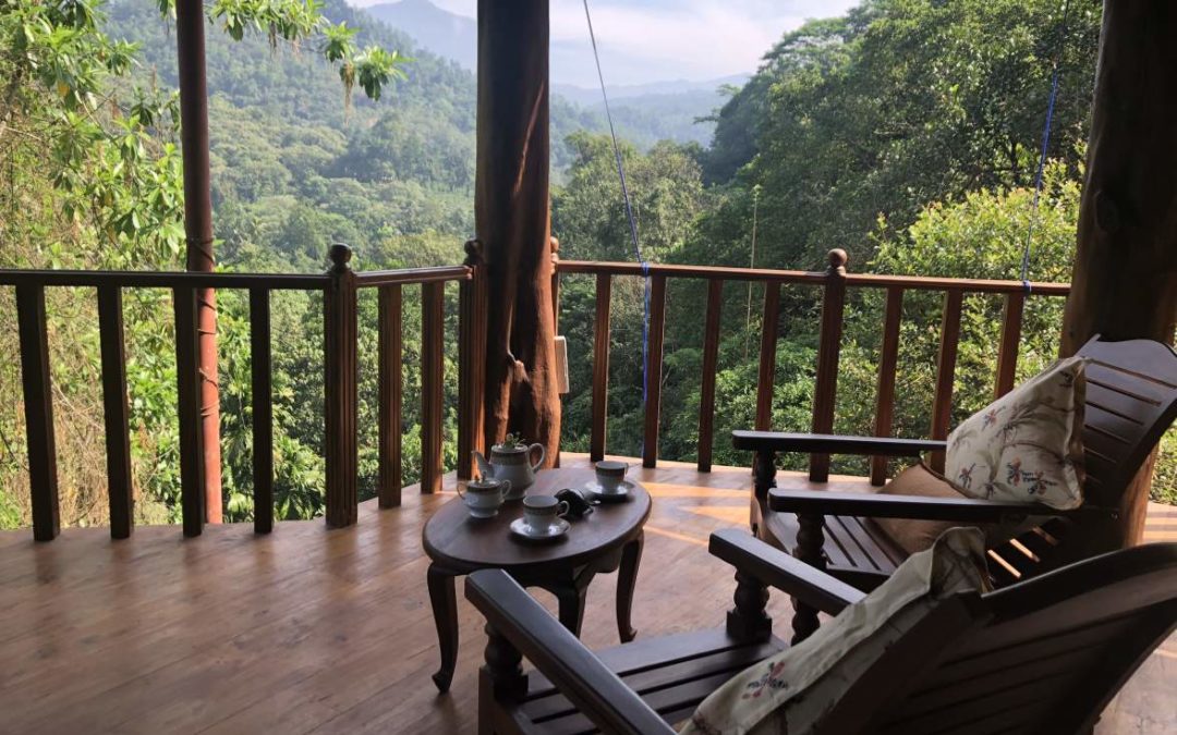 Herrlicher Ausblick in den umliegenden Wald von der Terrasse des Wanakaset-Anwesens. Bild: Wanakaset.