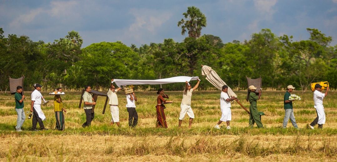 Gäste des Ulagalla by Uga Escapes können bei der Reisernte im März selbst Hand anlegen. Bild: Uga Escapes.