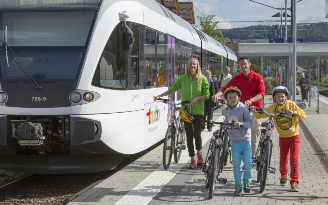 Ein Stück mit Zug oder Fähre, danach eine Tour mit dem Fahrrad. Mit der „Fahrrad-Kombi“ des Bodensee Tickets ist das unkompliziert. Bild: Bodensee Ticket.