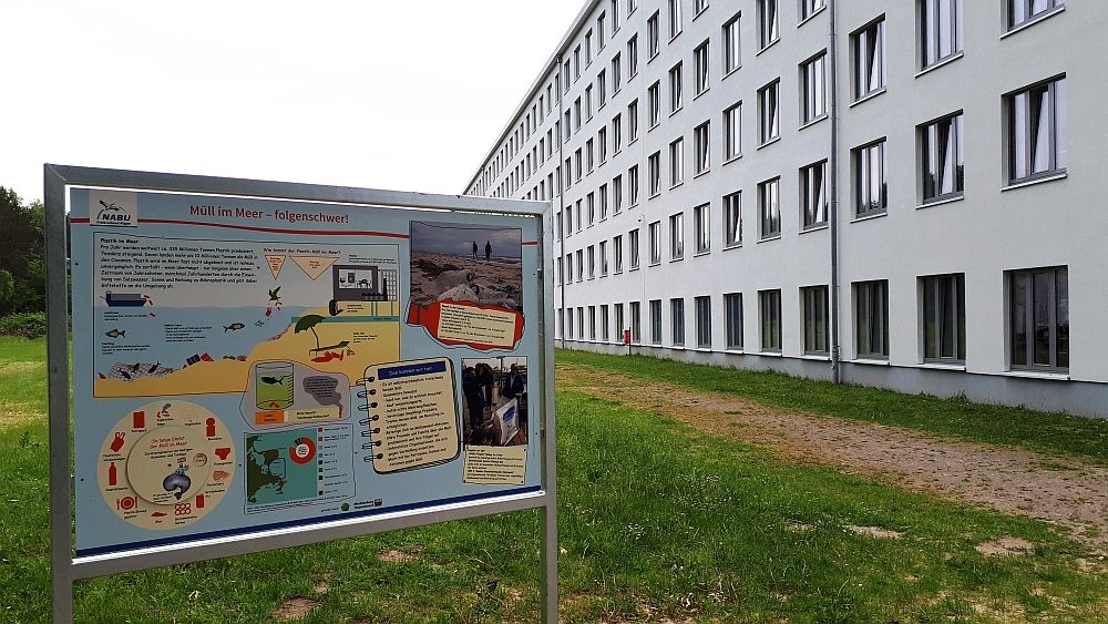 Infotafel zu Müll im Meer am Strandaufgang hinter der Jugendherberge Prora, Bild: DJH MV.