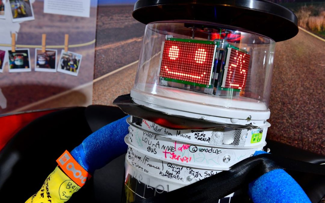 Der Roboter hitchBOT5 ist ein Vorbote des großen neuen Bereichs zu KI und Robotik, der am 26. Oktober 2018 eröffnet wird. Bild: © Heinz Nixdorf MuseumsForum.
