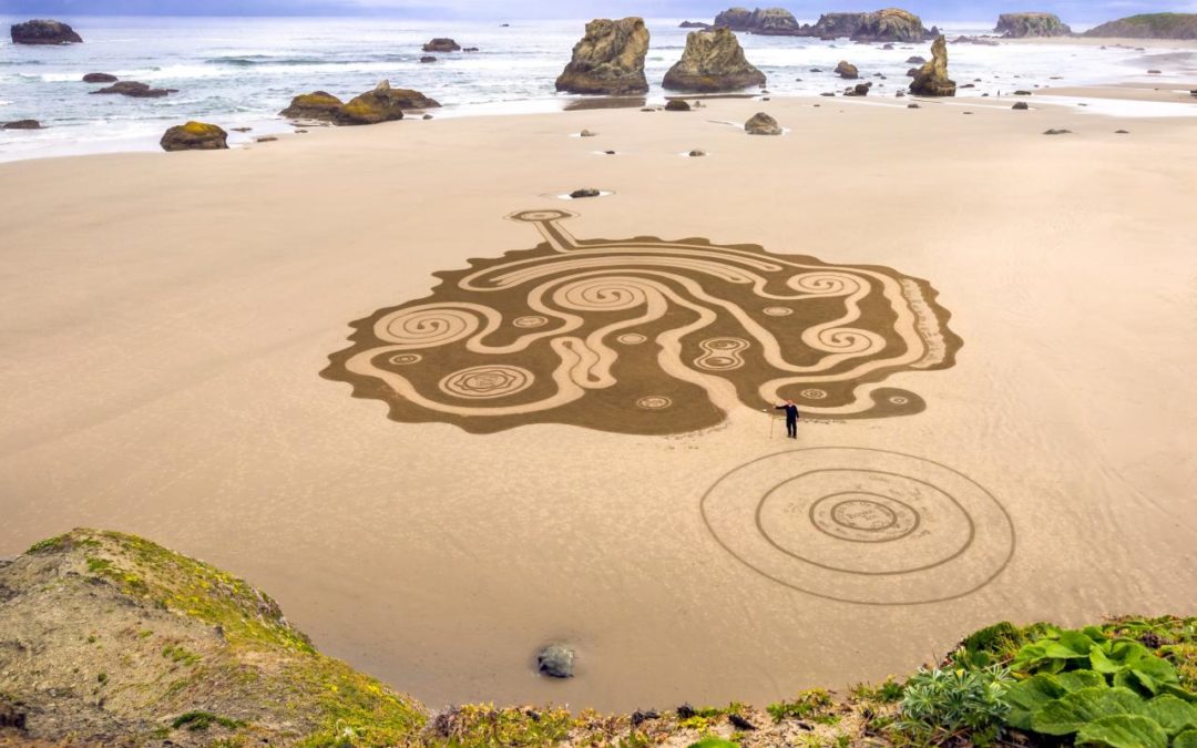 Circles in the Sand. Sandlabyrinth-Kunstwerk von Denny Dyke. Bild: (c) Susan Dimock Photography.