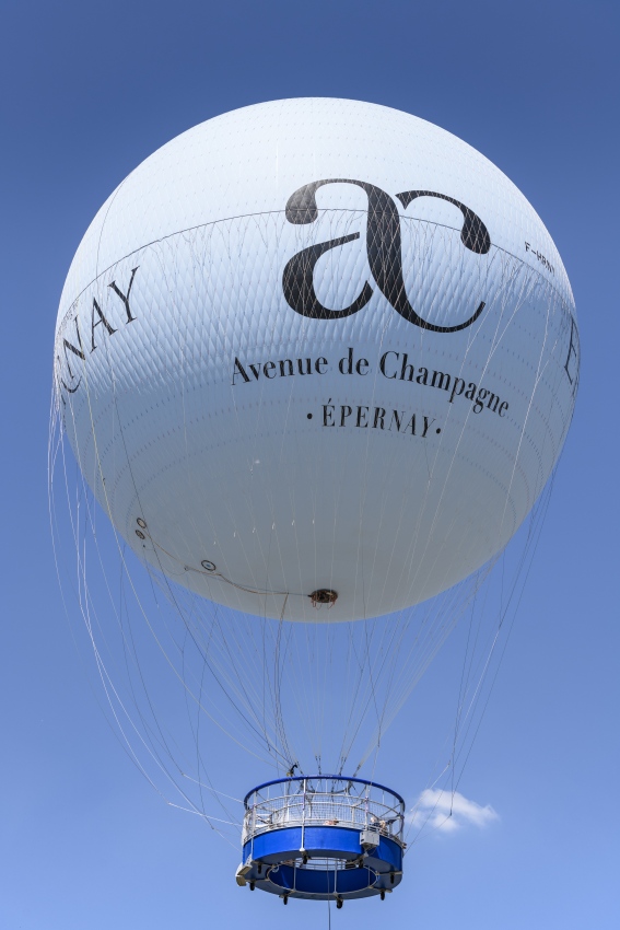 Im Herzen von Epernay auf der Esplanade Charles-de-Gaulle, können Besucher in einen Heißluftballon steigen. Dieser steigt auf 150 Meter Höhe, was einen 360 Grad Rundblick über die Champagnermetropole bietet. Maximal 30 Personen haben im Korb Platz und genießen die Aussicht während rund fünfzehn Minuten. Eine Champagnerflöte kann man zur Aussicht für nur 3 Euro dazubuchen. (Champagne-Ardenne-Tourismus)