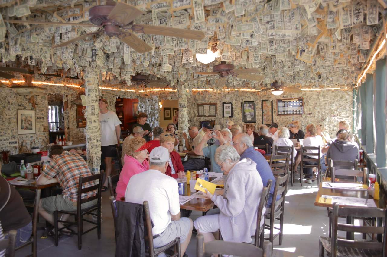 So passiert auf dem kleinen Cabbage Key, eine von über 400 teils unbewohnten Inseln rund um Fort Myers im Südwesten Floridas, die ausschließlich mit dem Boot erreichbar sind. Der Ausflug dorthin lohnt sich vor allem für einen Besuch des Cabbage Key Old House Restaurants. Denn hier kommen Gäste in den Genuss der berühmtesten Cheeseburger Floridas. Country- und Pop-Legende Jimmy Buffett pflegte hier jahrelang seinen „Cheeseburger in Paradise“ zu essen und schrieb gleich noch einen Hit darüber, den bis heute jedes Kind mitsingen kann. Besonders beeindruckend sind Decken und Wände, denn sie sind mit unzähligen Dollar-Noten verziert und sorgen so für ein unverwechselbares Ambiente. Wer sein Mittagessen unterwegs selbst fängt, der kann sich dieses im Old House Restaurant zubereiten lassen.