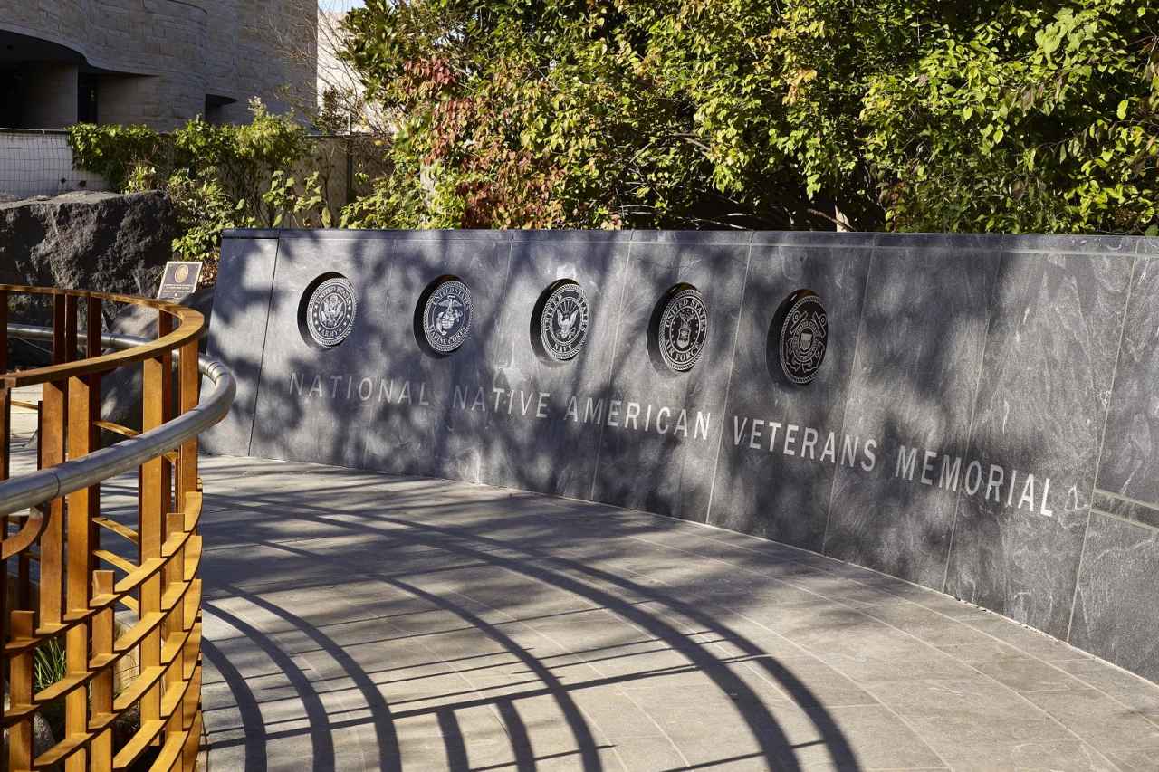 Zentral auf dem Museumsgelände gelegen, besteht das von Bäumen umgebene Memorial aus einem erhabenen Edelstahlkreis, der auf einer Steintrommel ruht. Ergänzt wird das Ensemble durch Wasserelemente, die für religiöse Zeremonien genutzt werden dürfen. Rundherum befinden sich Bänke, die zu Zusammenkünften einladen. Vier Lanzen, an die Veteranen, Familien und Stammesführer Gebetstücher binden können, vervollständigen den rituellen Ort, der allen Besuchern offensteht. Die Gestaltung der Gedenkstätte übernahm der Multimedia-Künstler, Forensiker und Veteran Harvey Pratt. Das Projekt wurde unterstützt von mehr als 85 Stämmen und Organisationen, darunter die Cheyenne- und Arapaho-Stämme, die Chickasaw Nation, die Poarch Band of Creek Indians und die Shakopee Mdewakanton Sioux Community. „Diese Gedenkstätte ist ein Tribut an das tiefe Engagement der amerikanischen Ureinwohner für unser Land“, erklärt Kevin Gover, Direktor des National Museum of the American Indian.