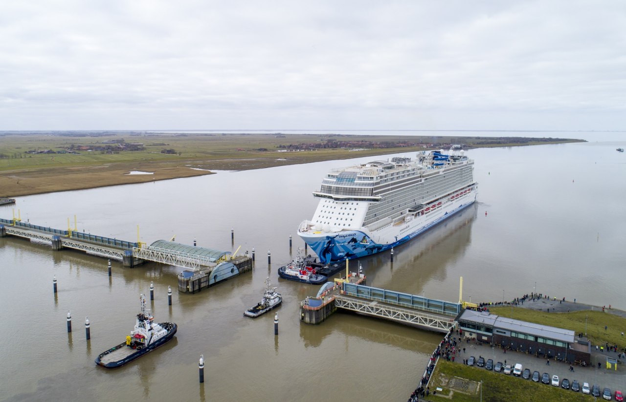 Die Norwegian Bliss hat die Meyer Werft am 13.03.2018 in Papenburg verlassen. Ihre Ankunft in Eemshaven, Niederlande, ist für den 15.03.2018 geplant.