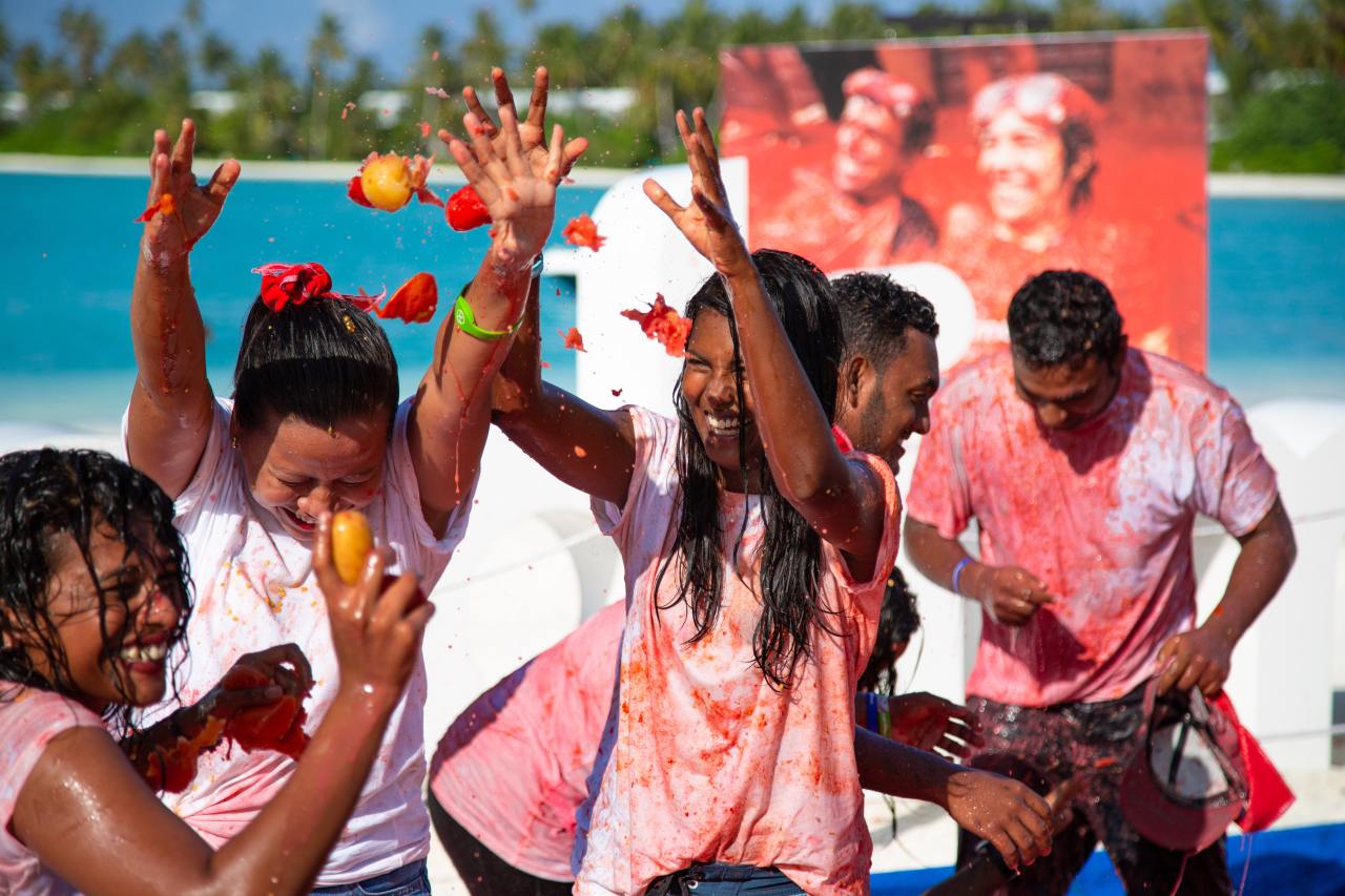 Am 31. August 2018 war es ausnahmsweise mal eine Ehre, mit Tomaten beworfen zu werden, denn an jenem Freitag richtete das Lifestyle Resort Kandima Maldives mit „La Tomatina“ das erste Tomato Festival in der Geschichte der Malediven aus. Über 300 Gäste vergnügten sich bei dem vierstündigen Event, traten in verschiedenen Disziplinen gegeneinander an – und standen sich bei der berühmten Tomatenschlacht Aug‘ in Aug‘ gegenüber.
