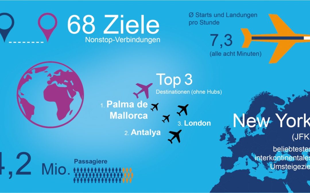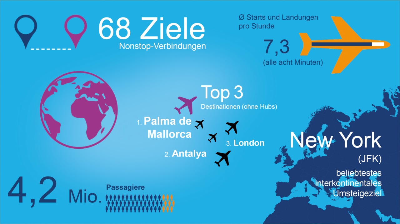 Die rasante Entwicklung wurde vor allem durch neue Strecken und erweiterte Kapazitäten von Eurowings, Germania, Ryanair und Wizz Air getragen. Insgesamt kamen im vergangenen Jahr 18 neue Ziele hinzu. Damit umfasste der Flugplan mehr als 60 Nonstop-Ziele. 17 verschiedene Airlines flogen den Flughafen regelmäßig an. Der Marktaustritt der langjährigen Partner airberlin und NIKI sowie das schwächelnde Türkeigeschäft konnten die Bilanz nicht trüben: Die dadurch eingebüßten Passagierzahlen konnten mehr als kompensiert werden.