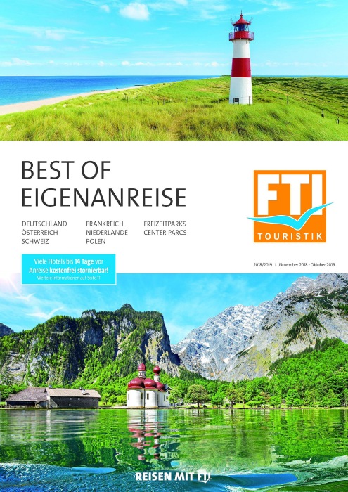 Der Veranstalter FTI fasst die bisher getrennten Programme „Deutschland, Polen, Niederlande“ sowie „Österreich, Schweiz, Frankreich“ erstmals im „Best of Eigenanreise“ Katalog 2019 zusammen.