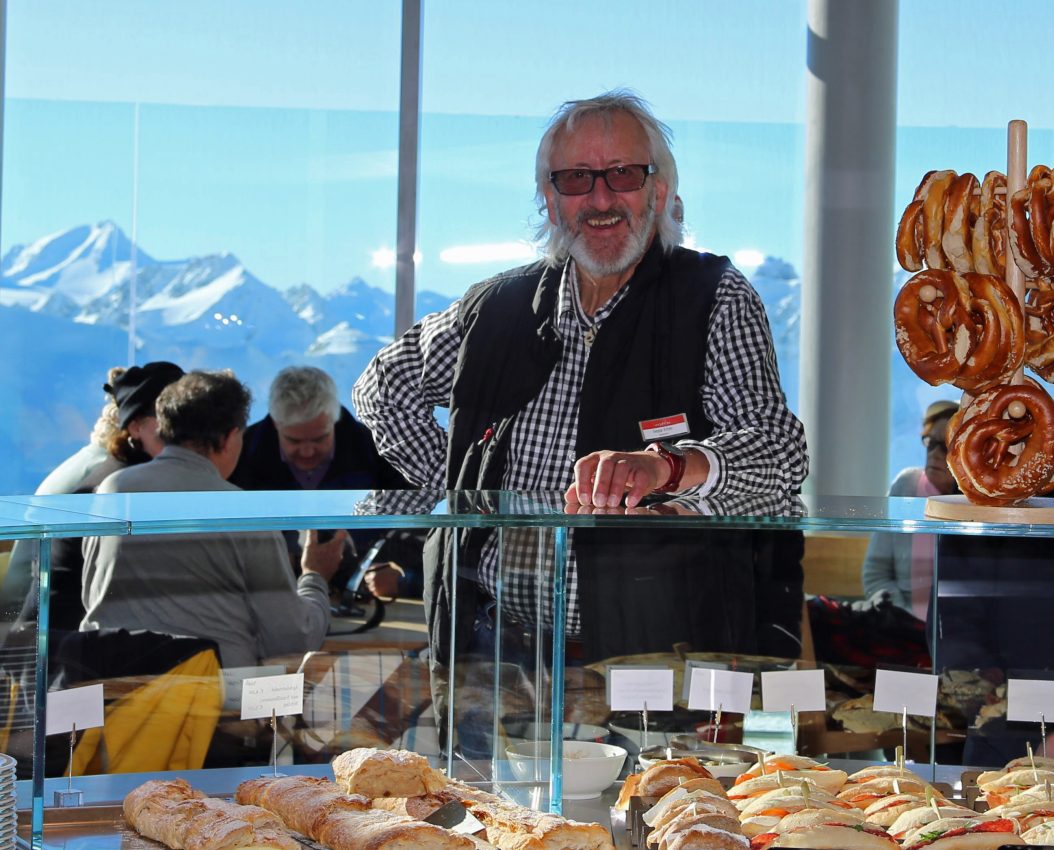 Davon kann auch Sepp Eiter (59) ein Lied singen. Er leitet das Café 3.440 – und musste bereits mehrfach Servicekräfte ins Tal verabschieden, weil der dauernde Aufenthalt in der Höhe nicht jedermanns Sache ist. Sepp selbst freut sich jeden Morgen wieder neu über „den schönsten Arbeitsplatz der Welt“. Wenn er in seiner charmanten Art Sachertorte, Cremeschnitte und Apfelstrudel offeriert, fühlt man sich sofort heimisch. „Ich bin ein einfacher Hüttenwirt“, sagt er – und wird für seine lässige Tiroler Gastfreundschaft an diesem exklusiven Ort geliebt. (TV Pitztal)