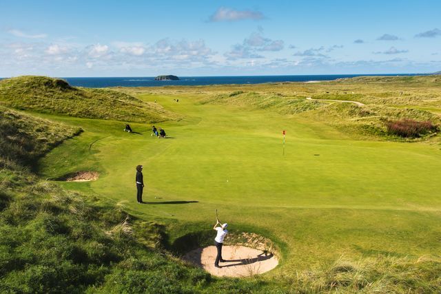 Doch nicht nur das Preisgeld lockt die besten Spieler der Welt nach Irland an den Wild Atlantic Way, auch die besondere Atmosphäre auf der grünen Insel und die ausgezeichneten Plätze begeistern selbst die verwöhntesten Akteure. Nirgendwo sonst auf der Welt ist die Golfplatzdichte wohl so groß wie hier. Die Insel misst von Norden bis Süden ungefähr 450 Kilometer und ist 260 Kilometer breit – und verfügt über circa 440 Golfplätze. Allein im County Donegal im Nordwesten mit rund 150.000 Einwohnern gibt es elf ausgezeichnete 18-Loch-Plätze, neben Ballyliffin auf der Halbinsel Inishowen, beispielsweise der Rosapenna Golf Club oder auch Narin and PortnooGolf Club. Und wenn die Spieler oder die Zuschauer zwischen den Runden Zeit zur Erholung brauchen, finden sie die im Donegal Castle, im Glenveagh National Park oder am Five Finger Strand.