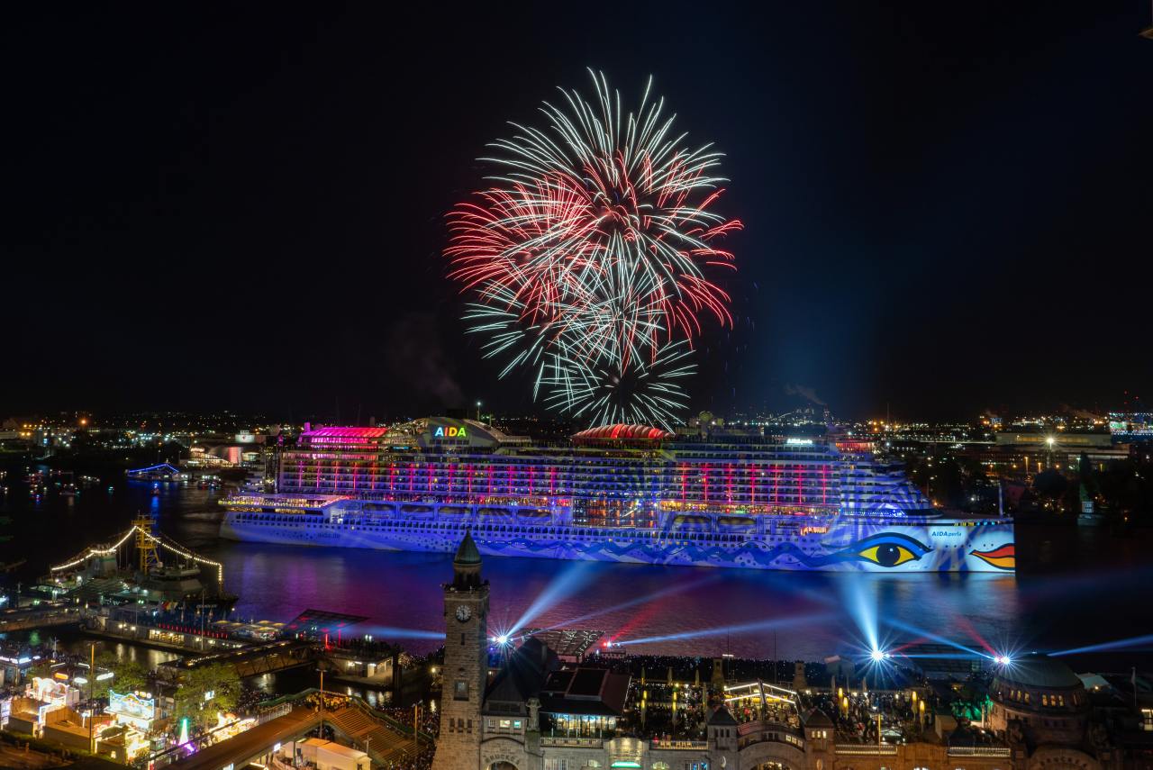 Zum 830. Hafengeburtstag Hamburg präsentierte AIDA Cruises als Hauptsponsor das große Geburtstagsfeuerwerk. Mittelpunkt der Licht- und Feuerwerksinszenierung war das Kreuzfahrtschiff AIDAperla, welches die große Schiffsparade entlang der Landungsbrücken anführte.