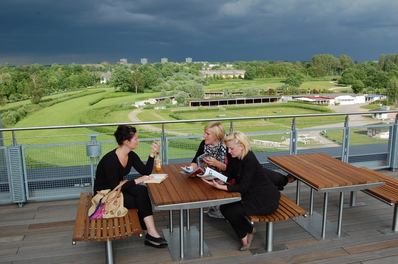 Einer der Höhepunkte des Neubaus ist sicherlich die große Panorama-Dachterrasse, die einen spektakulären Blick auf die Galopprennbahn „Horner Rennbahn“, auf der jedes Jahr im Juni/Juli das Deutsche Galopp-Derby ausgetragen wird, ermöglicht. Aber auch der Innenbereich kann sich mit seinem großzügig gestalteten Eingangsbereich und einem zweigeschossigem Aufenthaltsraum mit Galerie oder dem Lounge-Bereich mit Kamin sehen lassen. Die Sitzkapazität in den drei Speisesälen wurde ebenfalls vergrößert, außerdem gibt es verschiedene Freizeiträume.