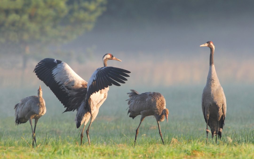 Ein Naturschauspiel der besonderen Art kann noch bis Ende April in Mecklenburg-Vorpommern bestaunt werden: die Balz der heimischen Graukraniche. An einem der bedeutendsten Kranich-Rastplätze Mitteleuropas – der Darß-Zingster Boddenkette und Rügen – haben Naturfreunde die Möglichkeit, die Vögel des Glücks beim so genannten Hochzeitstanz zu bestaunen. Dabei sind hohe Sprünge, hastige Zickzackläufe, trompetenartige Rufe und kräftiges Flügelschlagen zu beobachten. Nicht selten werden dabei auch Pflanzenteile und kleine Steine in die Luft gewirbelt. Mehr als 4.200 Brutpaare, das entspricht fast 50 Prozent des deutschen Gesamtbestandes, führt es jährlich nach Mecklenburg-Vorpommern. Verstärkt werden sie durch Tausende nachreisende Artgenossen, die die geschützten Gebiete in Mecklenburg-Vorpommern nutzen, um Kräfte für ihre Weiterreise nach Skandinavien und Osteuropa zu sammeln.