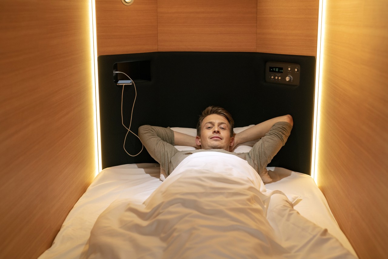 Stena Line hat japanische Schlafkojen auf der Meckelnburg-Vorpommern und der Skåne installiert, die zwischen Rostock in Deutschland und Trelleborg in Schweden verkehren.