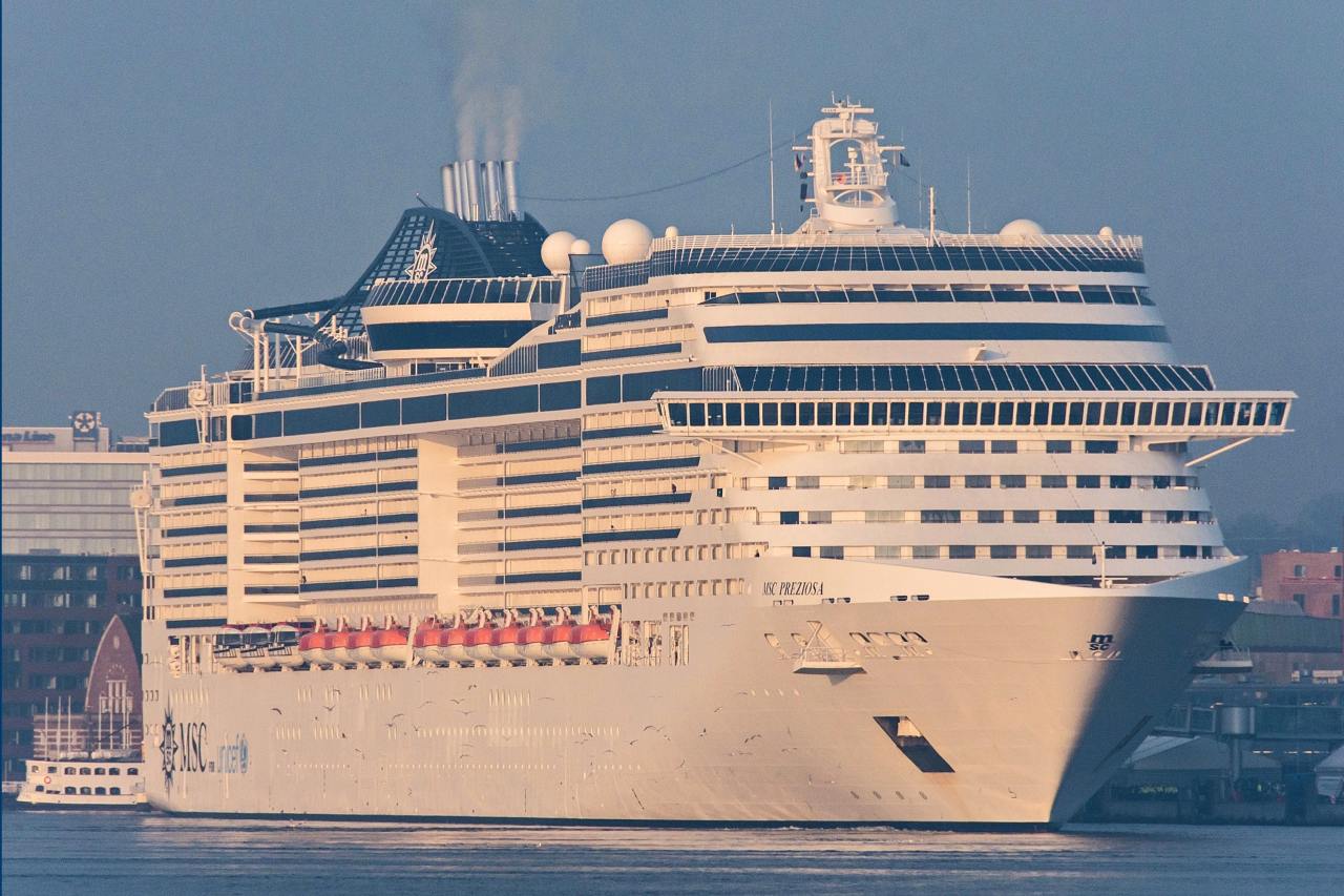 Die MSC Preziosa war in der Saison 2018 das größte Kreuzfahrtschiff, das den Hafen von Kiel angelaufen hat. Bild: Stephen Gergs.