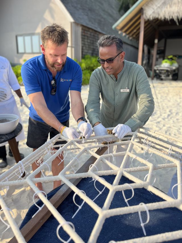 „Wir freuen uns sehr über die Zusammenarbeit mit Reefscapers bei einer so wichtigen Initiative für ökologische Nachhaltigkeit.“, betont Vincent Pauchon, General Manager des St. Regis Maldives Vommuli Resort. „Das Hauptprojekt ist die Installation von Korallenrahmen rund um das Resort, um unser Hausriff zu fördern. Ein leitendes Mitglied von Reefscapers wird die Insel zweimal im Jahr besuchen und den Prozess überwachen. Unsere ansässige Meeresbiologin Hazel Araujo bleibt dauerhaft bei uns, um die langfristige Instandhaltung, spezielle Bildungskurse sowie Gastpatenschaften für die Korallenrahmen zu unterstützen.“