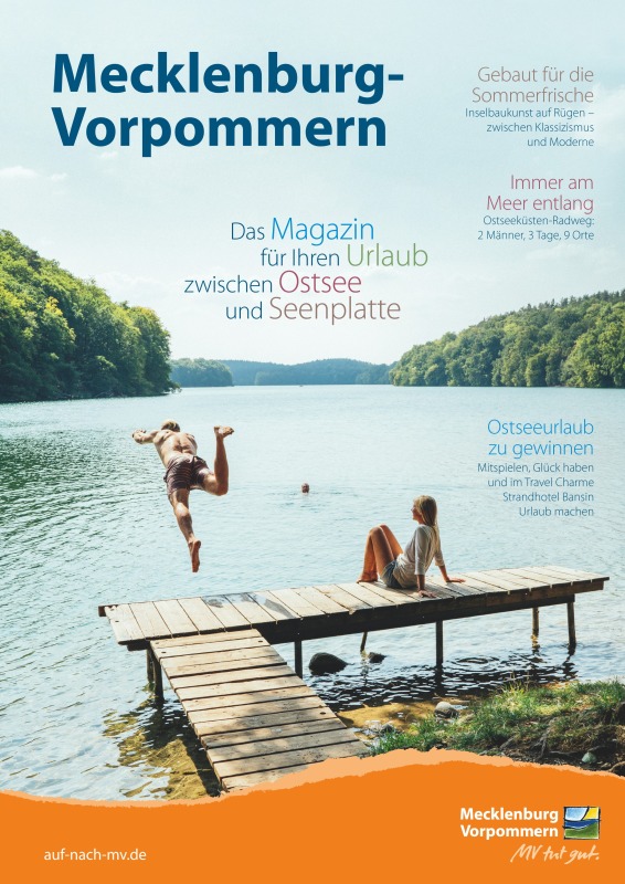 Beeindruckende Bilder und spannende Geschichten: Das neue Jahresheft des Landestourismusverbandes „Mecklenburg-Vorpommern – Das Magazin für ihren Urlaub zwischen Ostsee und Seenplatte 2019“ informiert auf 98 Seiten über Urlaubsmöglichkeiten im Nordosten. Mit einer Printauflage von 1,63 Millionen Exemplaren ist das Magazin samt thematischer Zeitschriftenbeileger für Aktiv-, Genuss- und Familienurlauber als Schlüsselkommunikationsinstrument in die touristische Jahreskampagne eingebunden. Die gedruckte Variante wird durch digitale und interaktive Magazine inklusive Videos und Fotostrecken ergänzt.