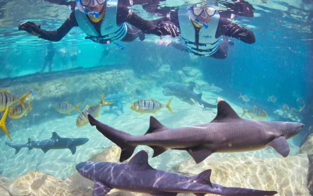 Ein ungefährliches Abenteuer. Die Haie sind Menschen gewöhnt und daher für die Schnorchler ungefährlich. Bild: SeaWorld Parks.