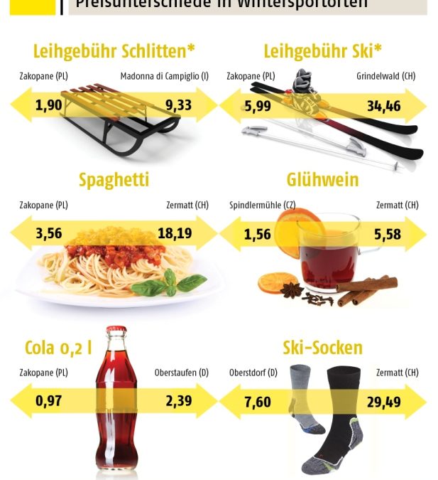 Grundsätzlich hinken solche Vergleiche der Urlaubsnebenkosten jedoch schon ein wenig, denn was nützen die günstigsten Nebenkosten, wenn das Skigebiet nur sehr klein ist und für ambitionierte Skifahrer nur wenig Auswahl bieten. Dennoch macht es für Urlauber schon Sinn, bei vergleichbarem Pistenangebot auch einen Blick auf die Nebenkosten zu werfen, denn auch in vielen ehemals kleineren Skigebieten – gerade in Osteuropa – ist in den letzten Jahren viel in die Infrastruktur investiert worden, so dass diese oftmals den etablierten Orten kaum noch nachstehen.