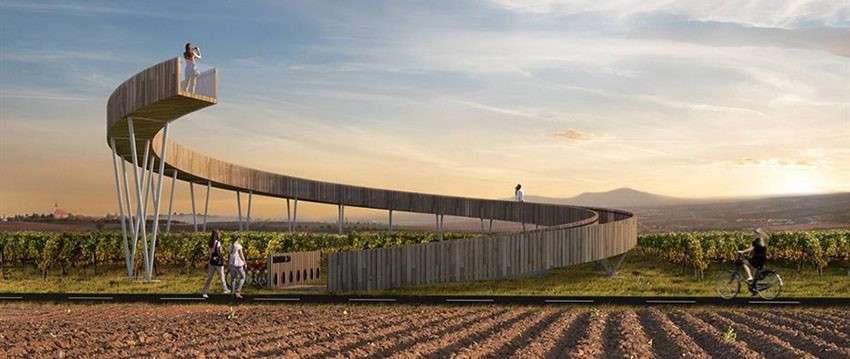 Im südmährischen Weinstädtchen Kobylí (Kobels) wurde nach Angaben von CzechTourism kürzlich eine neue Aussichtsplattform eröffnet. Von der knapp acht Meter hohen Spitze der spiralförmigen Rampe reicht der Blick nicht nur über die endlosen Weinberge, sondern bei gutem Wetter sogar bis zu den österreichischen Alpen. In dem Ort gibt es auch eine Reihe von historischen Weinkellern. (Czech Tourism)