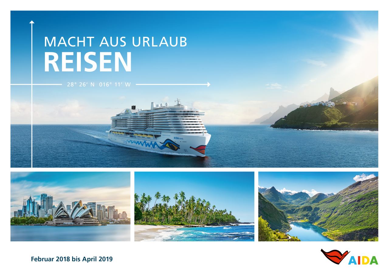 Am 5. Oktober 2017 erscheint der neue AIDA Katalog mit allen Kreuzfahrten im Reisezeitraum Februar 2018 bis April 2019. Damit sind erstmals die AIDA Kreuzfahrten in der Wintersaison 2018/2019 buchbar.
