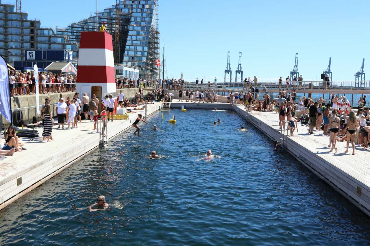 Das dänische Aarhus erhielt zum Sommerauftakt 2018 eine neue Outdoor-Attraktion: Am 30. Juni eröffnete in der Europäischen Kulturhauptstadt von 2017 das neue Hafenbad „Bassin 7“. Der Entwurf zur neuen Freizeitoase mit Platz für 650 Badelustige stammt von den Stararchitekten der dänischen Bjarke Ingels Group (BIG). Mit mehreren Schwimmbecken, Liegezonen sowie einer umlaufenden Promenade bildet das in nordischem Design entworfene Hafenbad aus Holz den neuen Mittelpunkt des Stadtteils Aarhus Ø. Das „Bassin 7“ ist in der Saison bis Ende August täglich von 10:00-19:00 Uhr geöffnet. Bademeister bzw. Lebensretter sowie eine geprüfte Wasserqualität sorgen für jederzeit sicheres Badevergnügen.