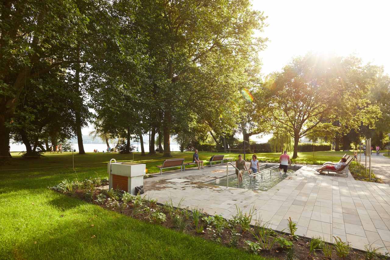 Tief durchatmen und zu Kräften kommen – die offizielle Kneipp-Stadt Radolfzell am Bodensee ist wie geschaffen dafür. Denn an ihren Ufern geht vom See eine ganz besondere Ruhe aus. Umgeben von Naturschutzgebieten mit Ried und Wäldern macht sie Besuchern ein umfassendes Gesundheitsangebot. Dazu zählt seit Juli diesen Jahres die neue Kneippanlage im Mettnaupark in unmittelbarer Nähe zum Bodenseeufer. Besucher können hier die heilende Kraft des Wassers nutzen und dem Körper entspannt etwas Gutes tun. Das Kneippbecken aus Naturstein ist von beiden Seiten aus begehbar und wird laufend mit Frischwasser befüllt. Regelmäßig finden direkt vor Ort Yoga-Kurse und Einführungen in die Lehre des „Wasserdoktors“ Sebastian Kneipp statt. Das Gesamtkonzept der Medizinischen Reha-Einrichtungen der Stadt Radolfzell METTNAU beruht auf dem Zusammenspiel von körperlicher Aktivität, Entspannung, seelischer Balance und gesunder Ernährung. Die direkte Lage am Bodensee hilft den Gästen beim Abschalten, Kraft schöpfen und Neuausrichten. (Radolfzell Tourimus)
