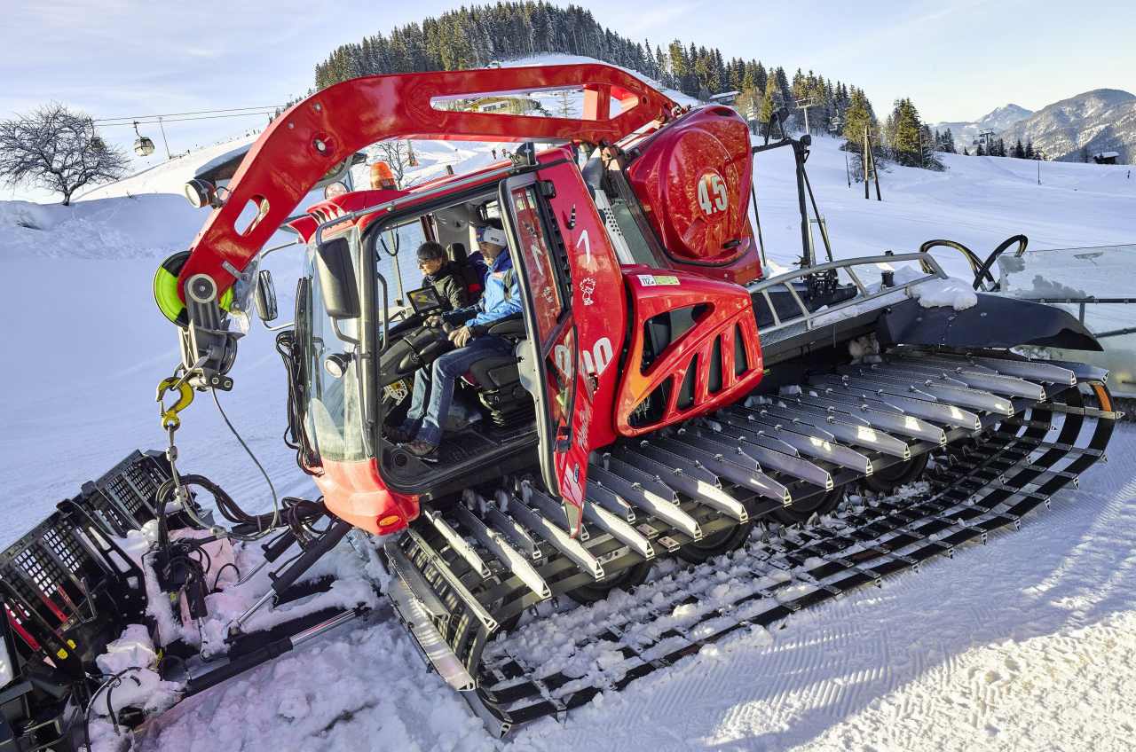 Wer schon immer wissen wollte wie Pistenraupen funktionieren, sollte in dieser Saison die kostenlosen Besichtigungen in der SkiWelt Söll am Wilden Kaiser/Tirol nicht verpassen. Immer dienstags erhalten Interessierte bei der Pistenraupenführung von 14.30 bis 15.30 Uhr einen Blick hinter die Kulissen. Und die ganz Mutigen fahren sogar mit: Bei Pistenraupen-Touren, begleitet von einem professionellen Fahrer, begeben sich Erwachsene und Kinder mit den neun Tonnen schweren Geräten mittwochs bis freitags auf ein einstündiges Abenteuer durch die SkiWelt Söll. Treffpunkt ist die Mittelstation vor dem Hexentopf, bis Ende Januar 2020 um 15.45 Uhr, ab Februar um 16 Uhr. Pro Maschine fahren maximal ein Erwachsener und ein Kind (ab sechs bis zehn Jahre oder mindestens 1,30 Meter Körpergröße) mit. Wer nach der Tour noch nicht genug hat, fegt mit dem Schlitten auf der beleuchteten Rodelbahn Hexenritt talabwärts. Eine Pistenraupentour kostet 65 € für Erwachsene, Kinder bis zehn Jahre zahlen 40 €. (TV Wilder Kaiser)