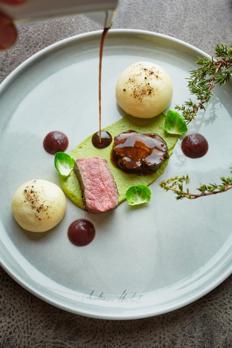 So kommt Wild von befreundeten Jägern der Gemeindejagd, Lamm wird exklusiv für ihn beim Vorderrainerbauer gezüchtet, Rind bei anderen Leoganger Bauern. Bei Wildhühnern und Duroc-Schweinen gibt es ein gemeinsames Projekt mit dem Schattenbachbauer, Forelle und Saibling kommen von den Leoganger Fischzüchtern Grundner und Hansenauer, der österreichische (!) Wolfsbarsch stammt von einem steirischen (!) Biozüchter, die Enten aus Straden und sogar für Reis hat er mit Jakob Winter einen Jungbauern gefunden, der diesen nachhaltig in Niederösterreich (!) kultiviert, um nur einige Beispiele zu nennen. Gleiches gilt für Käse, Honig, Joghurts, Säfte und vieles mehr.