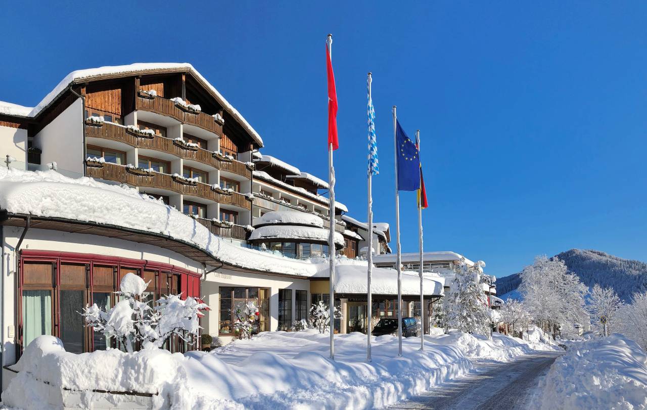 Winzige Vogelkrallen und mächtige Hirschhufabdrücke zeugen davon, dass man nicht alleine ist – auch wenn einzig das Knirschen des Schnees unter den Füßen zu hören ist. Schneeschuhwanderungen sind die ruhige Alternative zum Skifahren auf häufig überfüllten Pisten. Bei passenden Wetterbedingungen kann man sich in der Allgäu Sonne geführten Touren anschließen. Wer lieber allein loszieht, bekommt Equipment plus Routentipp vom Sportguide des Fünf-Sterne-Hotels. Zahlreiche bewirtschaftete (Alp-)Hütten laden zum Einkehren ein, zum Beispiel das Imberghaus auf 1.125 Metern. Wer nach einem heißen Kakao am warmen Ofen noch Lust auf eine Portion Adrenalin hat, leiht sich dort für 5 Euro einen Schlitten und rodelt in 15 Minuten ins Tal, samstags sogar mit Flutlicht bis 21 Uhr.