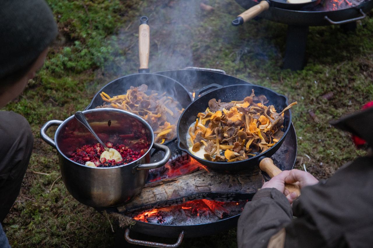 Outdoor-Kochen mit Zutaten aus der Natur – gekocht wird, was je nach Saison in der Natur zu finden ist. Bild: August Dellert.