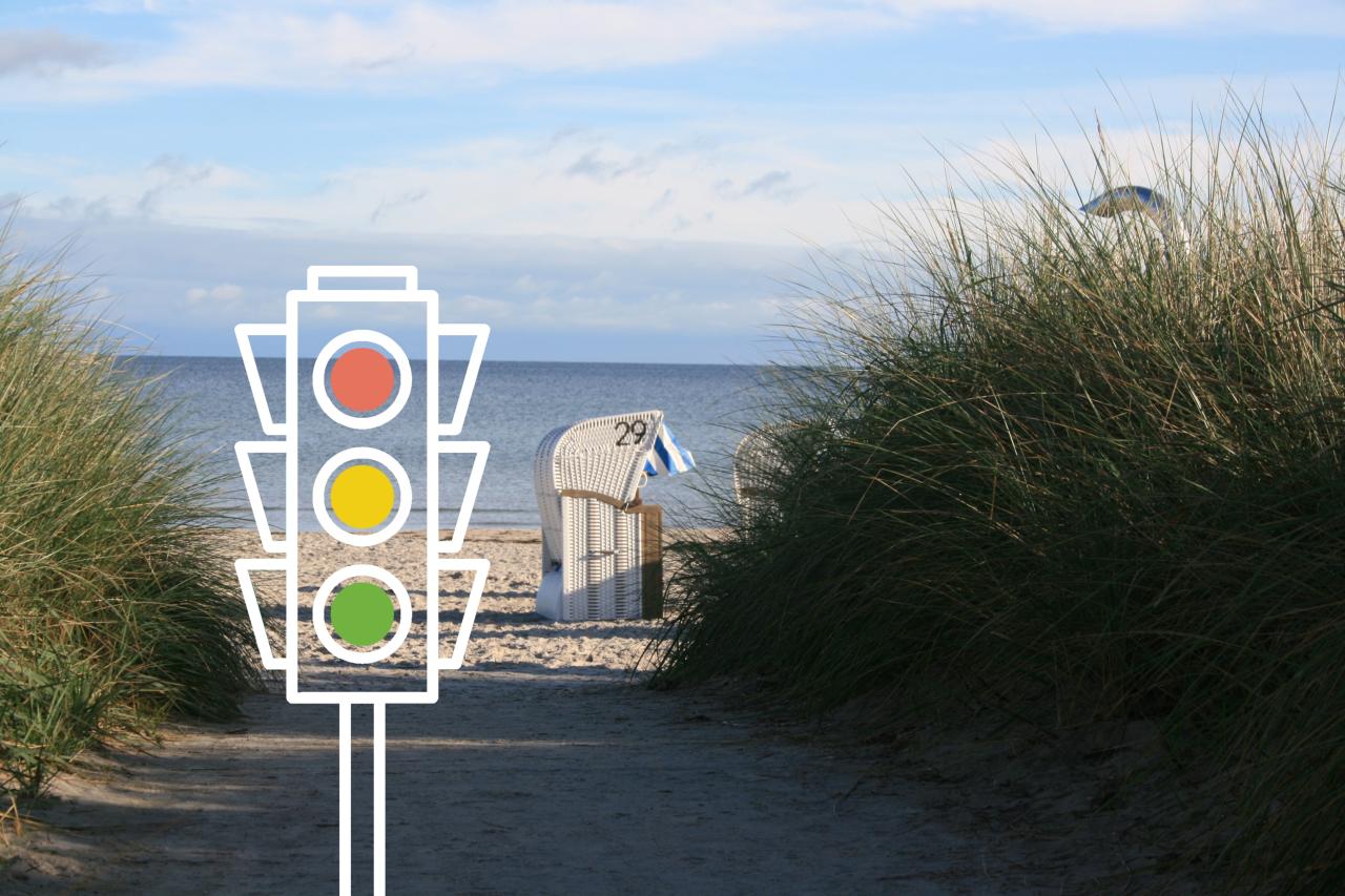 - Je nach aktueller Strand-Auslastung, zeigt die symbolische Strandampel grün (Strandzugang ist uneingeschränkt möglich), gelb (Strandzugang ist nur noch eingeschränkt möglich) oder rot (der Strandzugang ist nicht mehr möglich)
