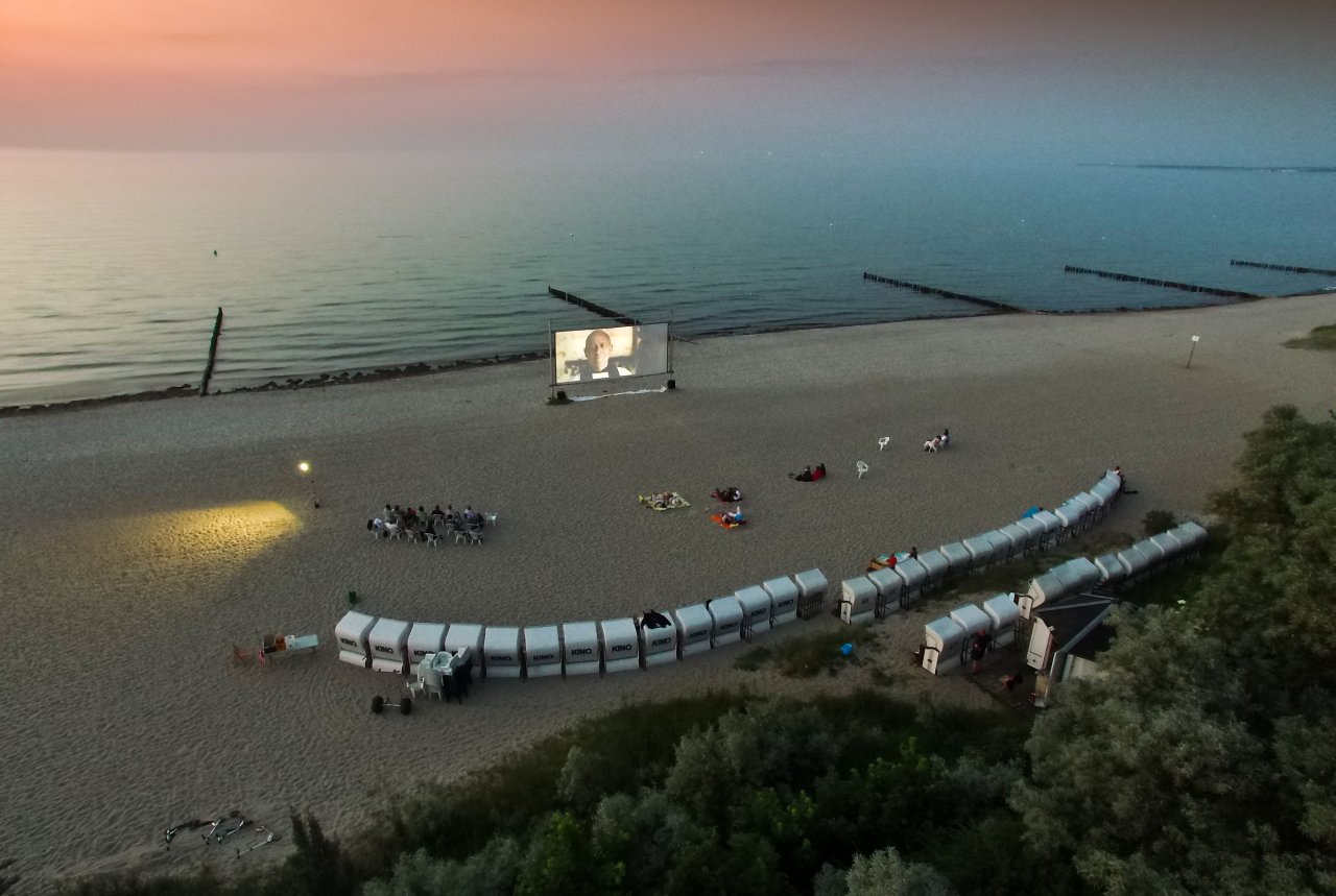 Der wohl größte Kinosaal entlang der Ostseeküste lockt in den Sommermonaten ins Ostseebad Kühlungsborn. Mit den Füßen im warmen Sand, dem leichten Rauschen des Meeres in den Ohren und dem salzigen Geschmack der Ostsee auf den Lippen kann man hier gemütlich im Strandkorb sitzen und auf der großen Leinwand Filme gucken.