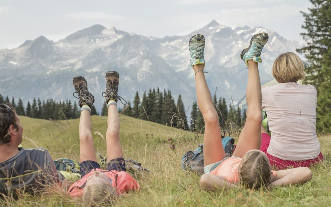 Wanderpause in den Bergen. Das Wandern - insbesondere auf Fernwanderwegen - wird im Sommer auch in der Schweiz immer beliebter. Bild: (c) Destination Gstaad, Melanie Uhkoetter.