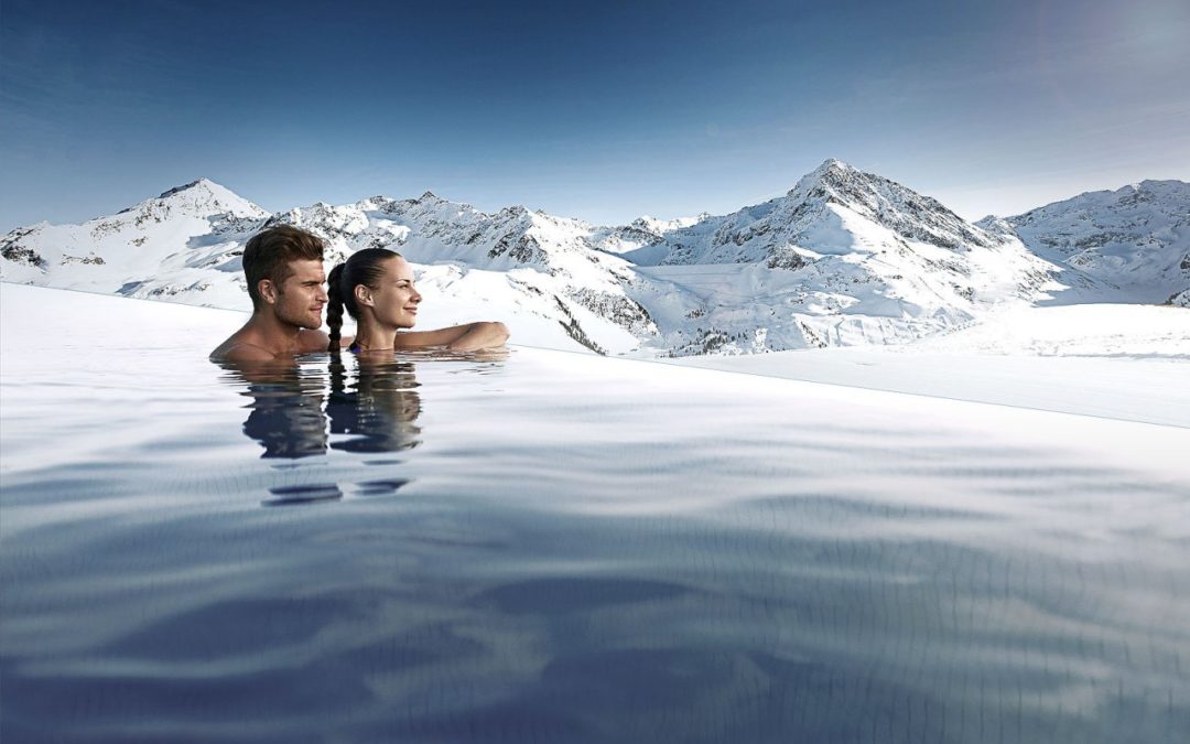 Auf exakt 2.050 m Seehöhe gelegen lädt der 100 m lange Endless Sky Pool Wintersportler ab der Wintersaison 17/18 zum Abtauchen ein. Bild: puhhha/Shutterstock/Andre Schönherr.