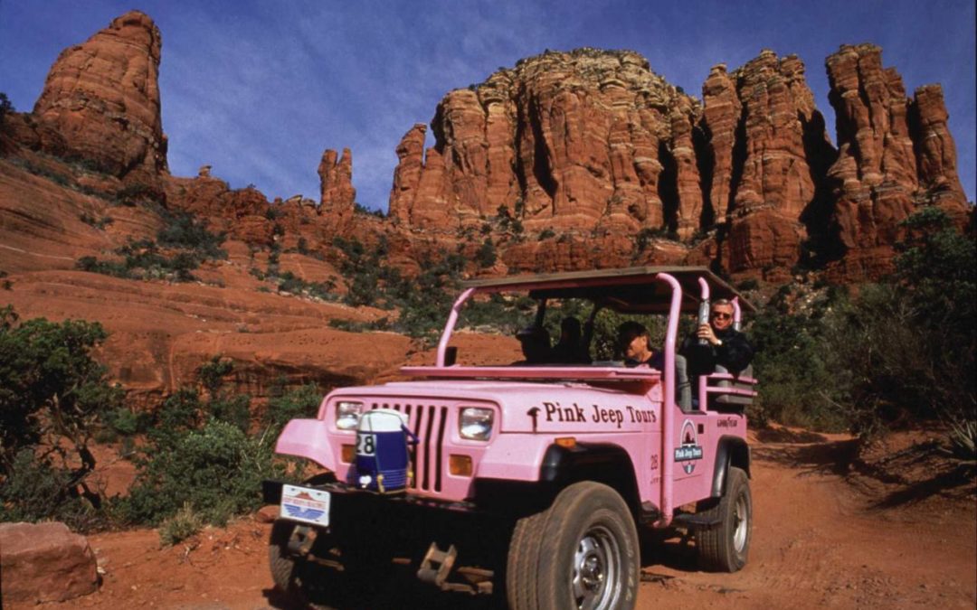 Die auffälligen Fahrzeuge von Pink Jeep Tours sind ideal für Offroad-Touren geeignet. Bild: AOT/Pink Jeep Tours.