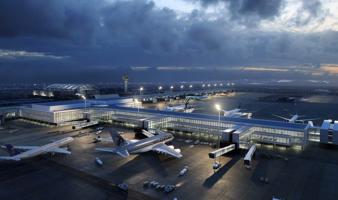 So soll der neue Flugsteig am Flughafen München nach der Fertigstellung aussehen. Bild: (c) Planungsgemeinschaft T1E: SSF/SP/sop/JSK.