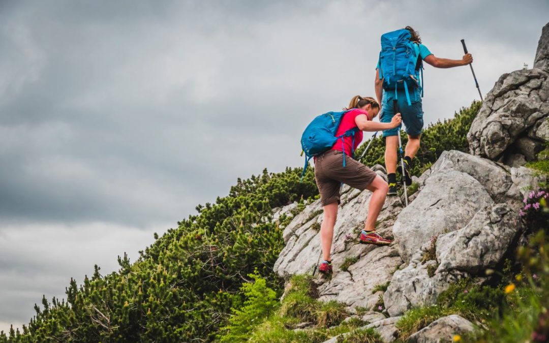 Über Stock und Stein: Auch das Gehen in schwierigem Gelände wird in den Kursen "ready to go" der Bergsteigerschule Watzmann geübt. Bild: (c) Bergsteigerschule Watzmann.