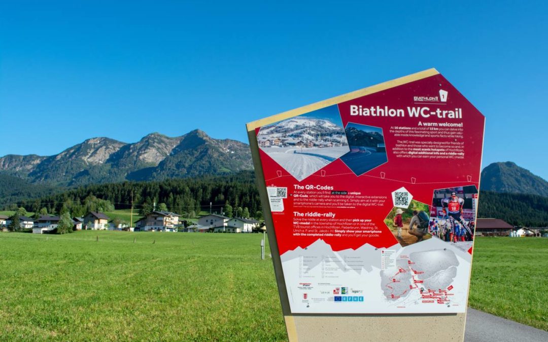 Auf 16 Stationen und 15 km erfahren Biathlonfans auch im Sommer alles über den Sport. Bild: (c) Petra Astner.